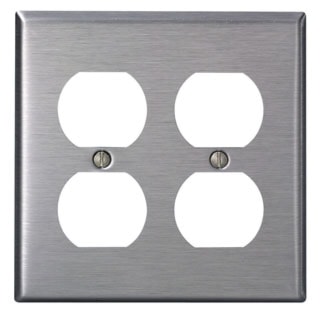 Double Outlet Wall Plate, Regular Size, 302 Stainless Steel, Device Mount, Stainless Steel, Brushed Finish